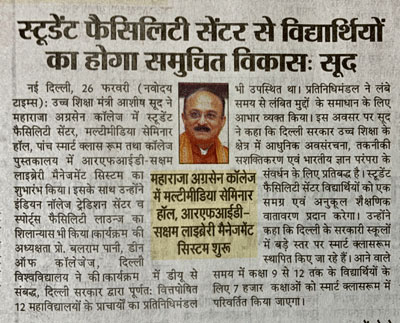It is my great pleasure to welcome all the students joining Maharaja Agrasen College for the 2024-2025 session. I congratulate you on successfully passing the CUET exam and securing admission to various undergraduate courses at our college.